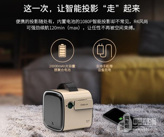 過去的智能投影由于受到電源的限制,在沒有電源的地方無法正常開機播放,也僅僅只是便攜而已,酷樂視為此提出了“移動投影”的概念,為R4風尚特別內置一塊20000mAh鋰電池,充滿電后足夠保障2小時續航時間。即使是旅游出差也能享受到觀賞影片或欣賞比賽的無窮樂趣。