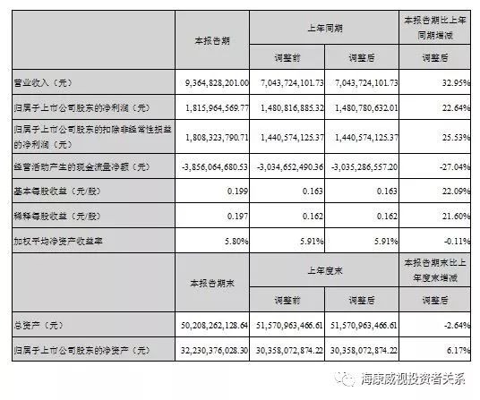 海康威視發(fā)布2018年第一季度報(bào)告:一季度單季實(shí)現(xiàn)營(yíng)業(yè)收入93.65億,同比增長(zhǎng)32.95%;歸屬于上市公司股東的凈利潤(rùn)18.16億,同比增長(zhǎng)22.64%。