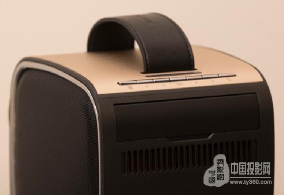 主體上做工精致,采用金屬磨砂材質(zhì),16.5x16x14.1cm的體積,簡約設(shè)計風(fēng)格,除了印了酷樂視logo和一個Full HD 1080P的字樣,整體上沒有多余的的元素。頂部是一個便攜的手提設(shè)計,甄選頭層牛皮,與奢侈品牌合作商合作,精密工序直塑成型。
