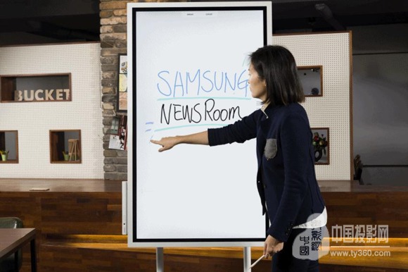 “三星智能互動電子白板不僅僅是一臺顯示器。你可以在屏幕上書寫,可以把它連接到智能手機,可以運行程序,可以屏幕截圖,可以添加內容,更可以將內容進行保存。” Hyunho Choi解釋道。