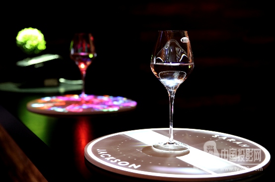 進入“光影吧(Shadow Bar)”,吧臺上面擺放著幾只酒杯,有一束彩色亮光從上方投射到杯身,閃現紅、藍、紫等多重色彩交織的奇幻光影,精彩絕倫。