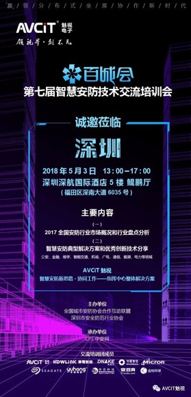 2018年5月3日,深圳,由全國城市安防協(xié)會(huì)合作互助聯(lián)盟和深圳市安全防范行業(yè)協(xié)會(huì)主辦、各地技防辦和安防協(xié)會(huì)支持、CPS中安網(wǎng)承辦的第七屆『智慧安防技術(shù)交流培訓(xùn)會(huì)(百城會(huì))』將首站起航。