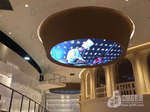 在酒店大堂,強(qiáng)力巨彩室內(nèi)全彩大屏環(huán)形吊裝,快速提升酒店格調(diào)