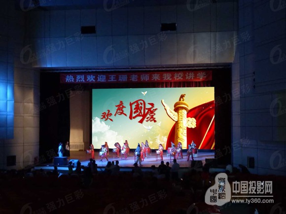 在學(xué)校禮堂,強(qiáng)力巨彩室內(nèi)全彩大屏靈活切換絢麗背景,傾力助陣學(xué)生生動演繹