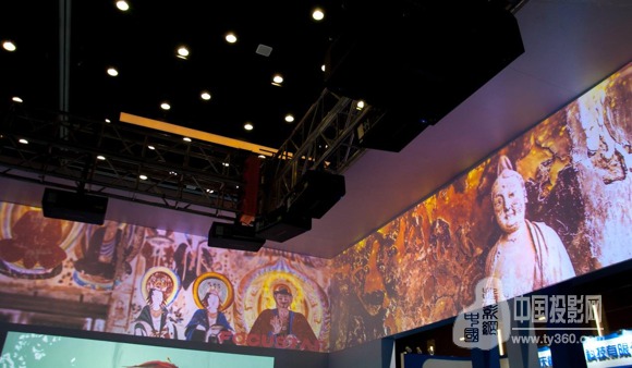 17年10月在國家大劇院由視美樂聯合出品的“蓮花盛開”藝術展受到各界一致好評,如果你還沒有去看,那么這次在2018IFC展,視美樂帶來了“不一樣”的360度石窟壁畫藝術,14臺SML-PF650投射四周墻體,通過多畫面融合技術,投射出一個寬約1.5米,長度超過30米的環形畫面,透過光影,呈現給觀眾一個聲光電絢爛璀璨的佛教文化圖景。