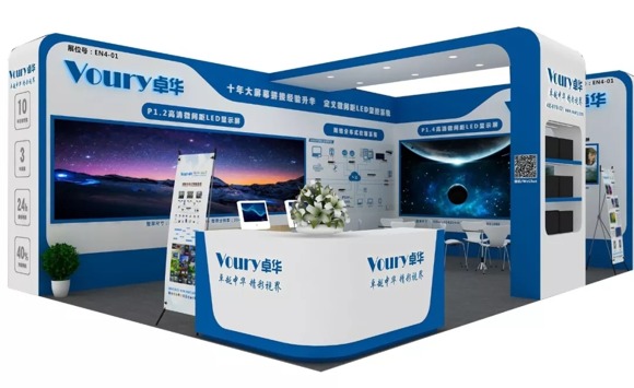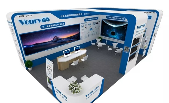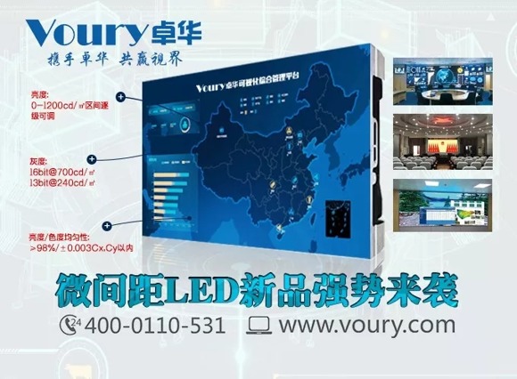 北京InfoComm,Voury卓華展覽主屏采用P1.2微間距LED組成,整屏尺寸為4.8m×1.35m,整屏分辨率將達到3840×1080;輔屏采用P1.4微間距LED組成,整屏尺寸為2.88m×1.62m,整屏分辨率將達到1920×1080。除此之外還有P0.9、P1.5、P1.6、P1.8、P2.0等不同點間距的顯示屏進行展示,產品涵蓋面非常廣。
