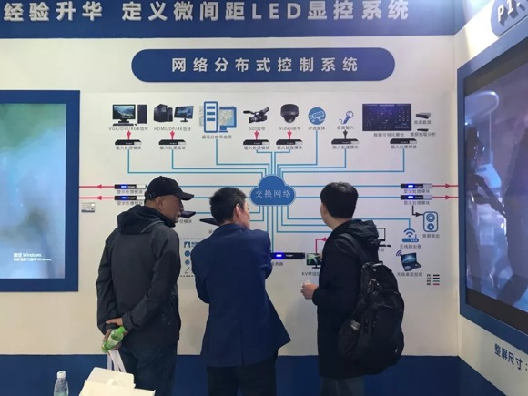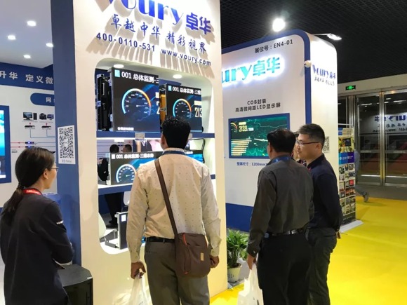 北京InfoComm,Voury卓華展覽主屏采用P1.2微間距LED組成,整屏尺寸為4.8m×1.35m,整屏分辨率將達到3840×1080;輔屏采用P1.4微間距LED組成,整屏尺寸為2.88m×1.62m,整屏分辨率將達到1920×1080。除此之外還有P0.9、P1.5、P1.6、P1.8、P2.0等不同點間距的顯示屏進行展示,產品涵蓋面非常廣。
