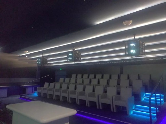 3D影院由6臺PJ LU6000投影機兩兩疊加,組成3組3D畫面,再融合成一個9m×2.5m的大型畫面。參觀者通過佩戴專業的3D偏振眼鏡,可以看到一個立體、真實,與傳統宣傳片不一樣的全新視覺畫面。