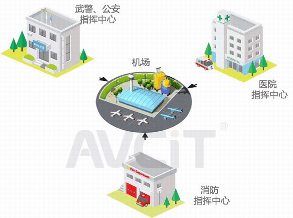 ● AOC將緊急事件(劫機情況)迅速推送至至維穩、治安部門(武警,公安,消防等)進行共享,同時將各乘客情況搜集資料后推送至醫護部門提供現場救治(針對機上人員情況配置救護設施),安撫等服務;
