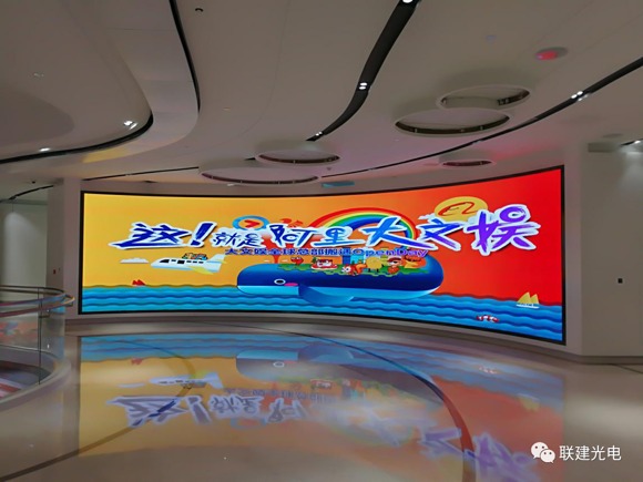 另一塊小間距LED創(chuàng)意顯示屏則安裝于阿里巴巴文娛集團(tuán)二樓政府接待區(qū),大幅度的內(nèi)弧造型,無(wú)縫隙化的完美拼接,不僅可以流暢穩(wěn)定的播放阿里巴巴各類視頻圖文畫面,兼?zhèn)淇萍挤逗蜕虅?wù)范,更為到訪的政府官員帶來(lái)全新的感官體驗(yàn)。