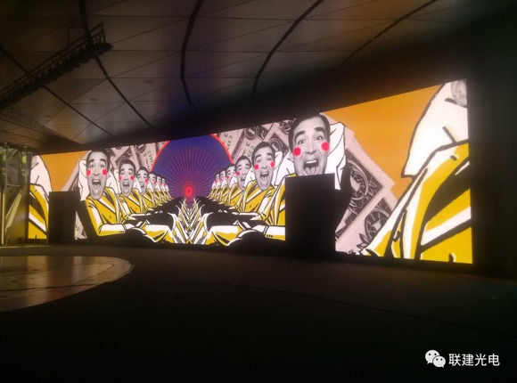 其中安裝于阿里巴巴文娛集團(tuán)一樓大廳的是一整面LED創(chuàng)意形象展示墻,由14塊異形小間距LED顯示屏組成,總面積33㎡。每塊小屏可以單獨(dú)顯示畫面,也可以組合顯示完整畫面,這塊LED創(chuàng)意顯示屏寓意阿里巴巴文娛集團(tuán)多個(gè)板塊相互獨(dú)立又融為一體,是集團(tuán)理念的傳遞窗口。值得一提的是,根據(jù)設(shè)計(jì)這14塊單屏之間的間隙最小為2.5cm,最大僅5cm,安裝精度難度相當(dāng)大,但聯(lián)建光電的工程師們秉承著工匠精神,用最專業(yè)的技藝精雕細(xì)琢,最終完美呈現(xiàn)了最佳效果。