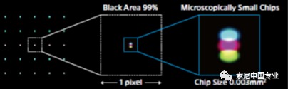 作為Micro-LED顯示技術的產物,索尼Crystal LED“黑彩晶”顯示系統令人矚目之處,是精細的LED晶體顆粒,0.003 平方毫米的顆粒尺寸是其他普通LED的百分之一。更小的晶體顆粒,無疑加大了產品制造的難度,也突顯出索尼在顯示領域的研發優勢。