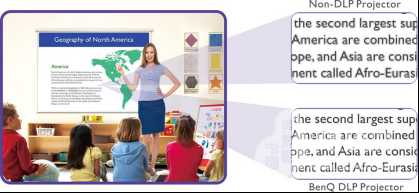 在窗簾不遮光、幕前燈光較亮?xí)r,投影機(jī)亮度不足會(huì)使畫面偏暗,色彩失真;低分辨率則會(huì)令表格與文字模糊一團(tuán),無法分辨。如何解決這個(gè)問題,讓教室中每個(gè)學(xué)生都享受到清晰精彩的投影大畫面?明基有辦法!