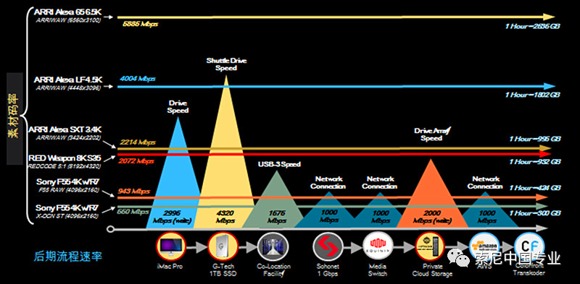 與Sony RAW格式相比, X-OCN的數(shù)據(jù)量要小很多。這意味著更長的記錄時間,更少的拷貝傳輸時間,更高效的后期流程。