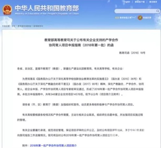 近日,教育部高等教育司公布2018年第一批產學合作協同育人項目企業名錄,廣州視睿電子科技有限公司(希沃)成功入選。