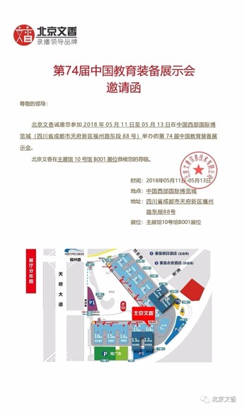 北京文香作為錄播領(lǐng)導(dǎo)品牌,受邀參加第74屆中國教育裝備展示會(huì),展會(huì)將于2018年05月11日—13日在四川成都中國西部國際博覽城舉行。北京文香將攜超強(qiáng)陣容亮相本次展會(huì),敬請(qǐng)期待。
