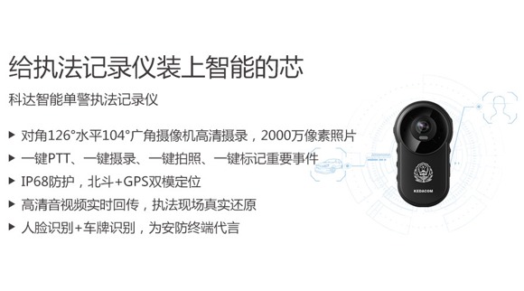 科達智能單警執法記錄儀可準確識別視頻中的人員、車輛,對接科達獵鷹人像大數據分析、海燕車輛大數據分析等后端系統,進行公安交警治安卡口、流動布控場所的重點人員及車輛的緝查布控。