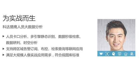 科達獵鷹提供從現場人員的實時抓拍分析存儲,到事前高危人員預警、事中重點人員布控、事后人員蹤跡查詢、身份核實的全過程應用,為公安治安防控、刑偵破案、反恐防暴等工作提供有力支撐。