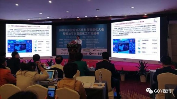 GQY營銷部副總經理王堅軍也上臺發(fā)言,表示贊同三位院士的觀點,并作了《AR-VIS智能化顯示平臺》的報告,闡述了GQY的AR-VIS可視化解決方案如何應用于石化生產中,如何幫助提高石化企業(yè)的智能化水平。