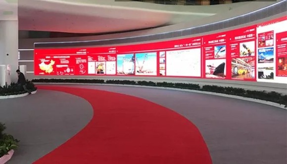 在三一重工的公司內部有著這么一個恢弘大氣的展示廳。它用一塊高2.88米,寬48米的LED高清顯示屏,向世界各地不斷涌來參訪的客商,以及對國有品牌自主創新表示十分重視的政府領導展示著大國重工的企業品牌形象。三一展廳的工藝要求極高,因為這不僅是一個企業的品牌形象,更是“中國制造”的品牌形象。此次,為了能夠更好地進行品牌宣講,三一重工特別啟用了上海三思的LED小間距高清顯示屏。