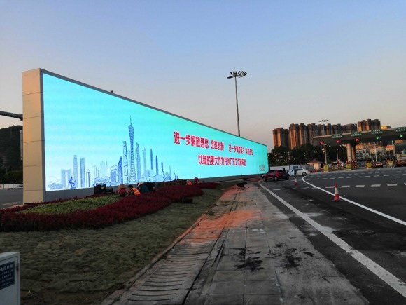 洲明新一代超輕薄廣告屏USD10顯示屏,成為了深圳鶴州收費站一道亮麗的風景線。
