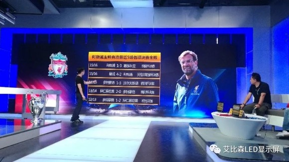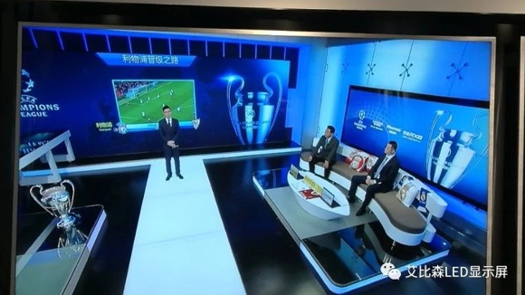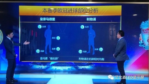 作為中國足球版權市場的“巨無霸”,PP體育將中超、亞冠、歐洲五大聯賽、歐冠、中國之隊等頂級足球賽事版權和詹俊、黃健翔、董路、蘇東在內的中國最強解說天團收入囊中。在這場世紀大戰的角逐中,手握歐冠、亞冠和南美解放者版權的PP體育徐莊蘇寧生活廣場南京演播中心,聯合艾比森打造了一個23.4㎡的高清豪華LED直播解說大屏,帶來最全面、最直觀、最專業的解說,讓用戶過“足”癮。