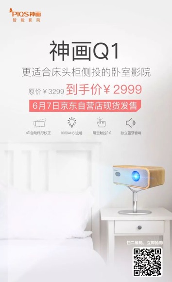 神畫Q1以其搭載的4D自動梯形校正和千流明、HDR10畫質,成功領跑中端投影市場。