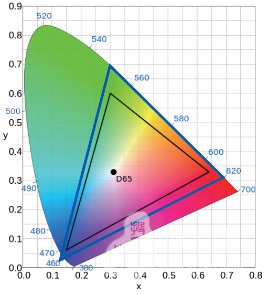 從馬蹄形色域中我們可以看到,采用了HLD光源的投影機色域覆蓋能力很強,所呈現(xiàn)的紅、綠、藍等純色基本上都分布在色域空間的外圍,已經(jīng)超出了sRGB的標準,甚至比市場主流家娛投影機的色域范圍體現(xiàn)還要廣,能夠真實地還原色彩。