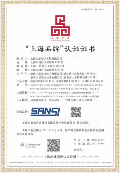 “上海品牌”認(rèn)證證書