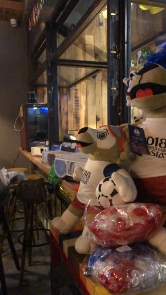 酒吧門前的世界杯元素也很是吸引路人,路過地人群都好奇的前來觀望活動主題。西安球迷最熱情,“NEC球迷之夜”活動將會帶給網友們不一樣的快樂,活動現場不但準備了多組有趣的游戲,還有很多獎品等候著大家。