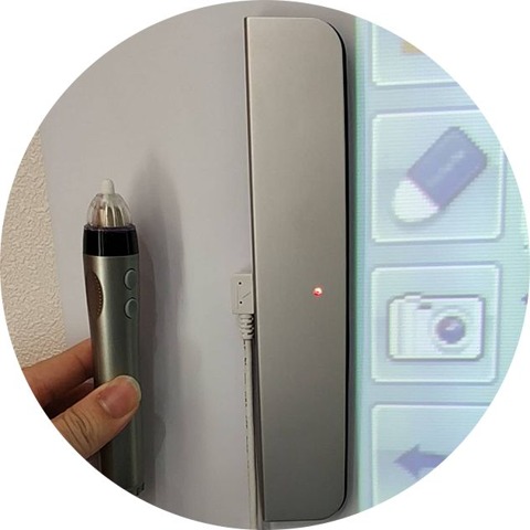 有一位外國(guó)友人對(duì)我們的一款產(chǎn)品感到好奇,他問(wèn)為什么這個(gè)投影機(jī)下面沒(méi)有白板,難道這只是為了展現(xiàn)投影機(jī)的功能嗎?這時(shí)我們的工作人員為客戶(hù)解釋道,其實(shí)這是將超短焦激光投影機(jī)與便攜式白板來(lái)組合來(lái)實(shí)現(xiàn)交互功能的。便攜式白板是將小方盒接收器安裝在投影區(qū)域側(cè)邊中間位置,然后通過(guò)超聲波技術(shù),捕捉電子筆書(shū)寫(xiě)的軌跡,就能實(shí)現(xiàn)正常電子白板的功能了。它不僅輕巧便攜,還不會(huì)受地形影響,不論是在墻上還是在地板上,只要是平整的地方都能正常的使用。