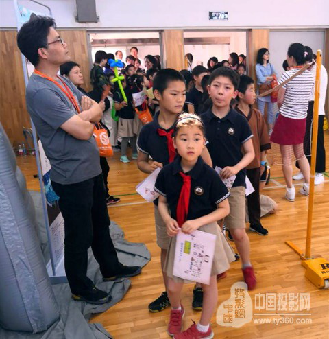 在眾多體驗項目中,由羿飛教育帶來的移動球幕影院大受歡迎,學生、家長自發在體驗區排起了長龍。