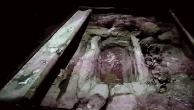芮國(guó)國(guó)君墓葬坑是博物館的重點(diǎn)展項(xiàng),為將墓葬坑出土?xí)r的面貌真實(shí)地還原給參觀者,所有的模型都按照一比一的比例制作,再現(xiàn)了西周晚期—春秋時(shí)期的墓葬制度。使用兩臺(tái)視美樂(lè)SML-PU750激光投影機(jī)對(duì)墓葬坑內(nèi)進(jìn)行異形投影,畫(huà)面色彩飽和亮麗,細(xì)節(jié)豐富充實(shí),各類陪葬品清晰可辨,根本看不出這其實(shí)只是模型。墓葬坑上方為一塊電動(dòng)開(kāi)合幕布,可遙控開(kāi)啟,配合投影及解說(shuō),將墓主人的生平事跡,墓坑的考古開(kāi)發(fā)過(guò)程娓娓道來(lái)。