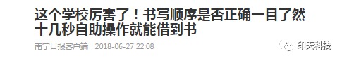27日,南寧日報發(fā)布了一則題為《這個學校厲害了!書寫順序是否正確一目了然 十幾秒自助操作就能借到書》的新聞,南寧日報都夸厲害的學校,到底是什么情況呢。