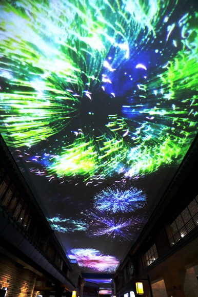 作為中國最長投影天幕街,該項目一度成為當地文化旅游的核心競爭力,震撼效果呈現讓各地游客耳目一新,稱贊不已。地下天幕街項目共使用NEC PX1004UL+激光工程投影機21臺,整屏視頻分辨率可達34500*1200,總畫面長230米,投影面積達1840平米,整個天幕效果十分驚艷,創新形態的引用無疑給商業街區帶來巨大的人流,其帶來的商業價值也是不可估量的。