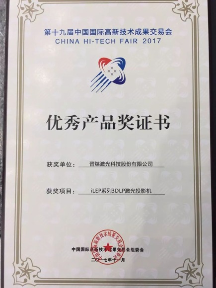 2017年11月,獲得由中國國際高新技術成果交易會組委會頒發的優秀產品獎證書