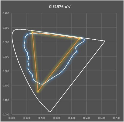 將該色域圖繪制在CIE1976色坐標系統中如下圖: