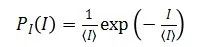 在激光散斑成像中,散斑強(qiáng)度是一個(gè)隨機(jī)量,通過Goodman的“隨機(jī)行走”理論 [3],可以獲得散斑強(qiáng)度的概率密度函數(shù)。在單個(gè)散斑平均覆蓋3~5個(gè)視錐細(xì)胞的情況下,視網(wǎng)膜感受到的散斑強(qiáng)度的概率密度函數(shù)為圖5所示的負(fù)指數(shù)函數(shù) [3],其概率密度函數(shù)為:
