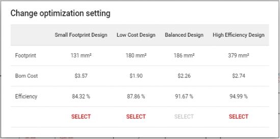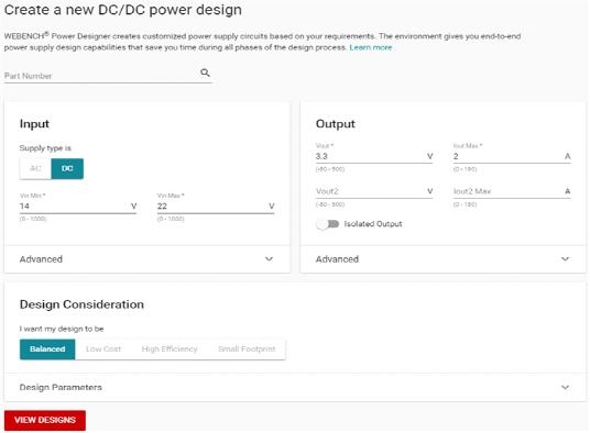 您首先看到的是經過我們重新設計的輸入參數表,如圖1所示。您可以利用該表快速查找您所需的TI設備,也可以通過基本輸入參數來進行搜索。高級設置能夠引導您完成符合任何標準的設計,并且可以通過轉動“Design Consideration”優化旋鈕來進行調校。