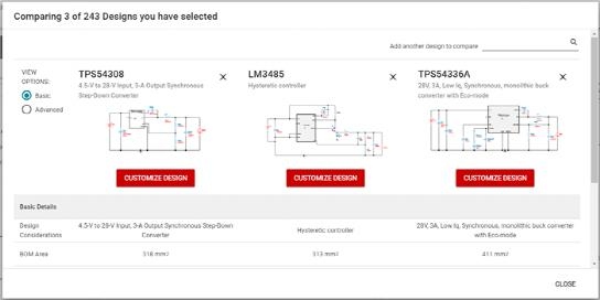 上圖2顯示了新的選擇界面,每個設計都有用于比較設計的復選框。此項新功能會生成一個表格,如圖3所示,其中包含了其他信息,如集成電路(IC)參數和集成電路特性,這些信息支持對多個設計進行并列比較。