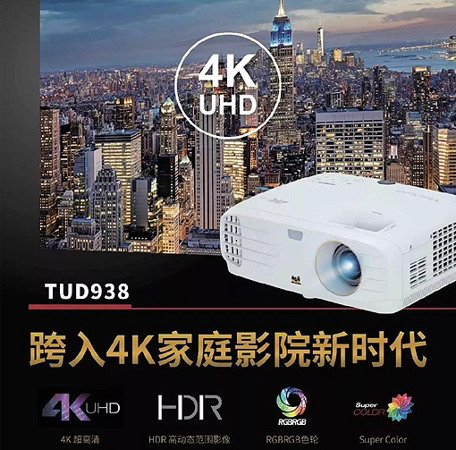 TUD938分辨率為3840×2160,亮度3000流明,對比度50000:1;其采用TI高規格4K顯示芯片,搭載XPR技術,可顯示830萬有效像素(3840×2160),提供更高級效果。