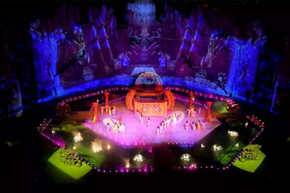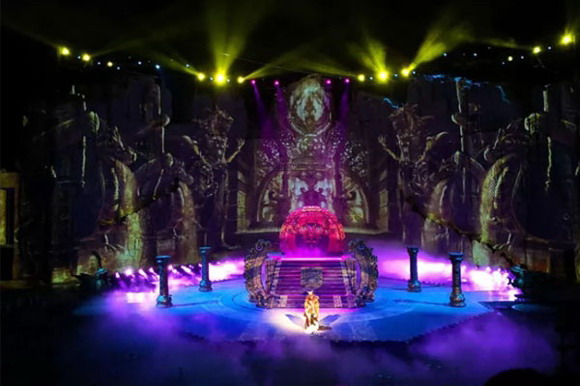 進(jìn)入2018年,全國各地規(guī)模不同、類型各異的實(shí)景演出超過60臺。實(shí)景演藝必不可少的組成部分包括實(shí)景包裝特效,結(jié)合人工實(shí)景和特效設(shè)備,在表現(xiàn)景區(qū)文化元素和提供表現(xiàn)手段上,有其獨(dú)特魅力和效果。聲、光、電、影等特效手段,給游客以視覺的沖擊、聽覺的驚喜,為文化建設(shè)項(xiàng)目提供全新概念。