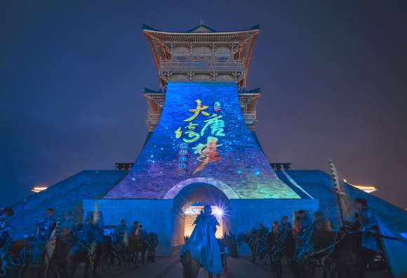 《盛世唐城之大唐倚夢》全景呈現了皇家軍威的軍陣、浩浩蕩蕩的馬隊、大氣端莊的唐風樂舞、異域風情的歌舞形式,精美絕倫的大唐服飾,營造出了盛世唐城穿越之旅的不眠之夜。在流光溢彩的夜唐城,Vivitek(麗訊)激光工程投影機DU9800Z帶你夢回盛唐當年境,道一出千年之戀的浪漫與夢幻,詠一首盛世太平頌,譜一曲大唐帝國風,行一段華夏復興路。