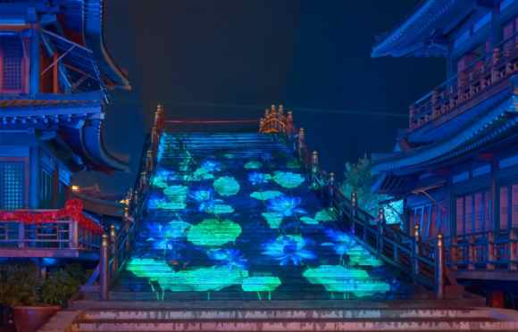 中國大型嵌入行進式全景秀《盛世唐城之大唐倚夢》是一場顛覆傳統表演形式的全景式饕餮盛宴。利用數字多媒體、裸眼3D、聲光電交互等技術穿越時光,通過開放性線路和多點式呈現,全景演繹夢回大唐。作為《盛世唐城之大唐倚夢》的主要影像設備,Vivitek(麗訊)共采用了38臺亮度為18,000流明的激光工程投影機DU9800Z,分布在花萼樓、虹橋、朱雀門、德勝門等著名長安城景點,其中花萼樓共使用12臺Vivitek(麗訊)DU9800Z激光工程投影機,虹橋、朱雀門和德勝門則分別使用了2臺、20臺和4臺,通過拼接、融合的方式投射出震撼清晰的3D影像,完美詮釋了裸眼建筑3D投影的震撼效果。