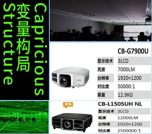 EPSON高規格投影機圖像絢麗,畫質穩定。其中愛普生CB-L1505UH NL 激光工程投影機儀器以其穩定的性能,保證展覽的順利舉行。產品搭配W05鏡頭,為參觀者呈現出了很多令人驚嘆的光影藝術空間。其采用的3LCD技術及激光光源設計,實現了色彩亮度更高、色彩過渡更柔和的高畫質畫面。