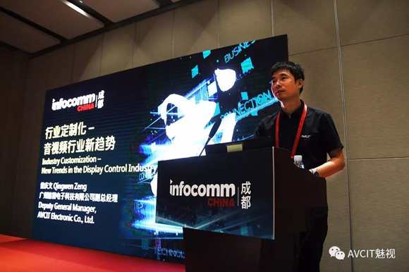 AVCiT魅視副總經理曾慶文先生作為行業知名品牌企業家、意見領袖,受到了InfoComm主辦方特邀出席本屆成都InfoComm高峰會首場論壇會議——InfoCommAsia Seminars研討會,并做了《行業定制化-音視頻行業新趨勢》主題演講。