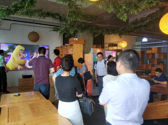 在公司總經理謝源先生的帶領下,領導們先后參觀了我司激光影院機、互動激光投影一體機、電梯投影廣告機等項目,在介紹到虛擬屏交互系統時,不少領導拍手稱贊,紛紛表示對我司擁有的激光顯示核心研發實力、研發工作表示贊許和高度評價。