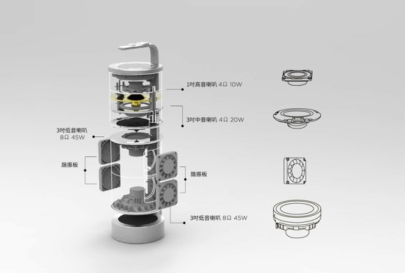 其次是低音對(duì)稱專利技術(shù)。此項(xiàng)專利可以幫助自由M3保持穩(wěn)定的低音輸出,將兩個(gè)三寸低音喇叭,一上一下對(duì)稱接入,兩邊用四個(gè)被動(dòng)諧振板包覆著,以抵消所有低頻產(chǎn)生的振動(dòng),因此,與傳統(tǒng)音響設(shè)備那種巨大笨重的身材相比,M3在產(chǎn)生干凈、有力的低頻的同時(shí),卻又可以維持輕便可攜帶的身材。
