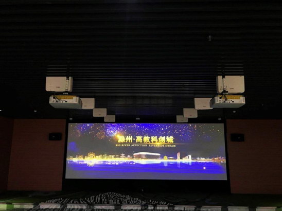 滁州高教科創城位于滁州市南譙新區,是皖東乃至長三角地區依托高等院校及科研機構,以戰略性新興產業和文化產業為主導的科教創業創新園區。滁州高教科創城展示廳,共應用了10臺NEC CR5450HL,其中8臺位于屋頂垂直投影立體的數字沙盤,另外2臺投影融合背景畫面。每臺NEC高端激光商務投影機承擔著展現高教城橋頭堡的重任,結合聲、光、電、圖像及計算機程控技術與實體模型相融合,直觀、全面、立體化地展示了滁州高教科創城未來規劃建設發展的宏偉藍圖。
