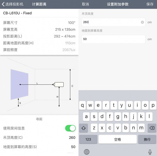 除了輕松的使用體驗(yàn),愛普生還針對(duì)用戶不同的居室環(huán)境,允許用戶自行輸入房間吊頂高度、地面到屏幕的高度,系統(tǒng)則會(huì)根據(jù)實(shí)際情況更新正確的數(shù)據(jù),幫助投影機(jī)安裝人員準(zhǔn)確地進(jìn)行設(shè)備安裝。